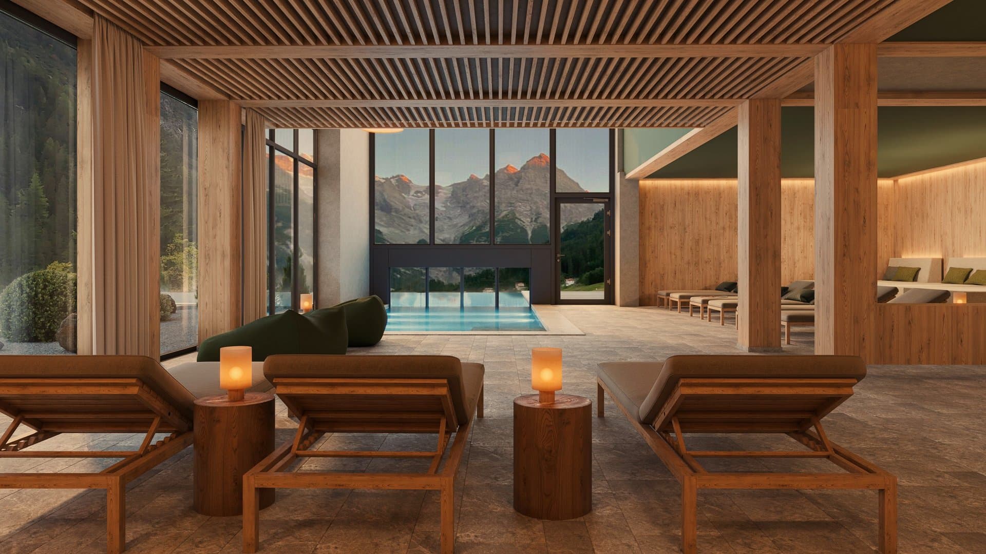 Infinity-Pool, Freiluft-Hot-Whirlpool, Panorama-Outdoorsauna, Indoorsauna und türkisches Dampfbad – unser Wellnessbereich lädt zum Entspannen ein, während der Blick über die Bergwelt des Ortlers schweift.
